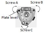 Repeat above steps until the bubble remains in the center of the plate level while the instrument is rotated to any position. |