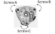 Turn the instrument approximately 90°. Adjust screw C, till the bubble will be in the center of the level. |