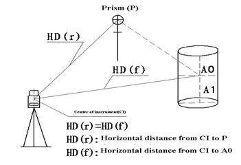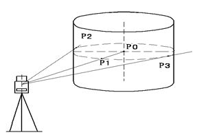 First, measure the distance to the point (P1) of the column surface directly. Then by measuring the azimuth angles of P2 and P3 on the column, you can calculate the distance, azimuth and coordinates of the column center.