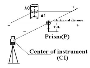 Sometimes we need to measure a coordinate of a point such as A1 whose position cannot place a prism, for example the center of a tree, this mode is helpful. It only needs to set the prism on the point which has the same horizontal distance to the instrument as that of the prism to the instrument. Then define the instrument height/target height to start offset measurement, you can get the coordinates of the center of the object.