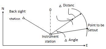 Setout measurement is used to Setout the required point. The difference between the previously inputted data to the instrument(the Setout data)and the measured value can be displayed by measuring the horizontal angle, distance or coordinates of the sighted point.