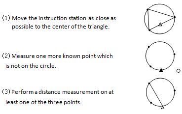 In some cases it is impossible to calculate the coordinates of occupied point if the unknown point and three or more known points are arranged on the edge of a single circle. It is also impossible to calculate if the included angle between the known points is too small. Be careful for the points can easily be aligned on the edge of a single circle.